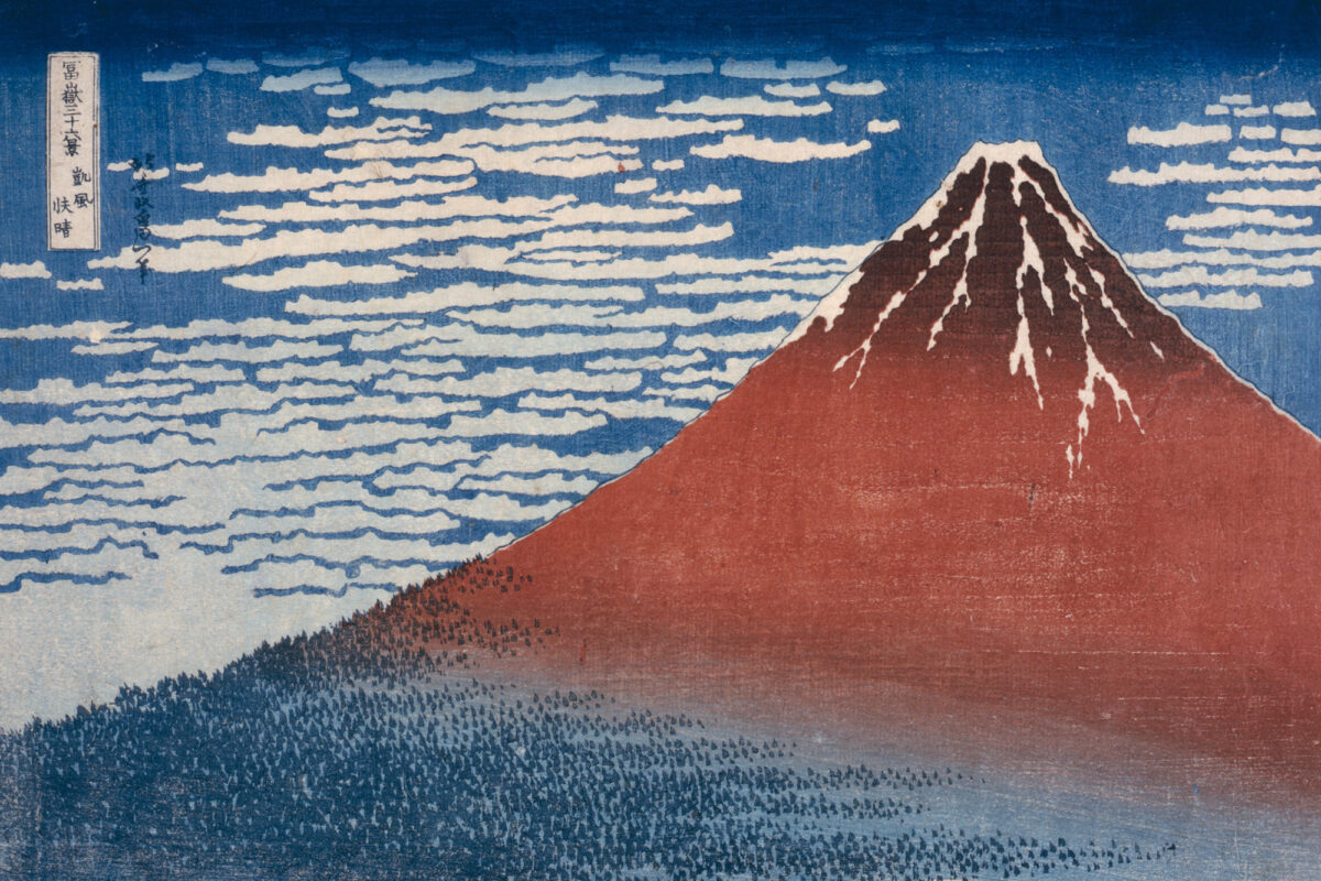 Inspiriert von den Holzschnitten des Katsushika Hokusai haben wir die geografischen Höhenzeichnungen des heiligen Berges der Japaner – Fuji zum Ausgang unseres Vorschlages genommen.