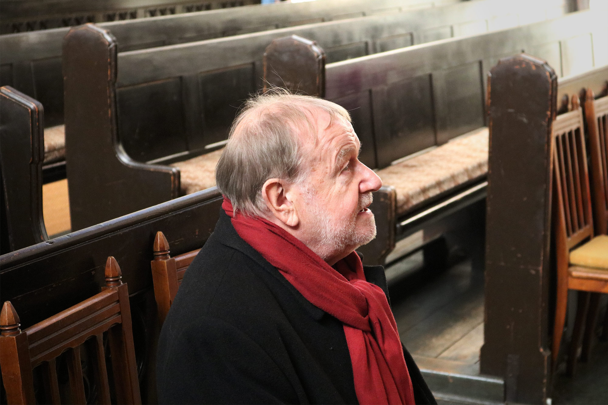 Was tun wir hier heute? Wir eröffnen die nun schon achte Verhüllung des Altarbildes dieser Kirche. Für die kommenden Wochen der Passionszeit wird nun das Verhüllungsbild von Lothar Boehme hier alle Blicke auf sich ziehen. Doch was hat das zu bedeuten? Als ich mich gedanklich auf den Weg zu diesem Abend machte, kam mir ein Vergleich in den Sinn – ein Vergleich, bei dem man ziemlich hoch ins Bücherregal greifen muss. Aber das ist angemessen. Ich möchte das, was hier heute tun, in Beziehung zu einem Klassiker der deutschen Literatur setzen. Ein Klassiker ist bekanntlich ein Buch, dessen Titel viele noch kennen, das aber kaum jemand gelesen hat. Ich gebe zu, dass auch ich diesen Klassiker nicht ganz gelesen habe – er soll, im Vertrauen gesagt, auch ziemlich langweilig sein. Aber es gibt darin eine Szene, die habe ich schon gelesen und sie kann uns auf doppelte Weise die Augen für die heutige Altarverhüllung öffnen.
