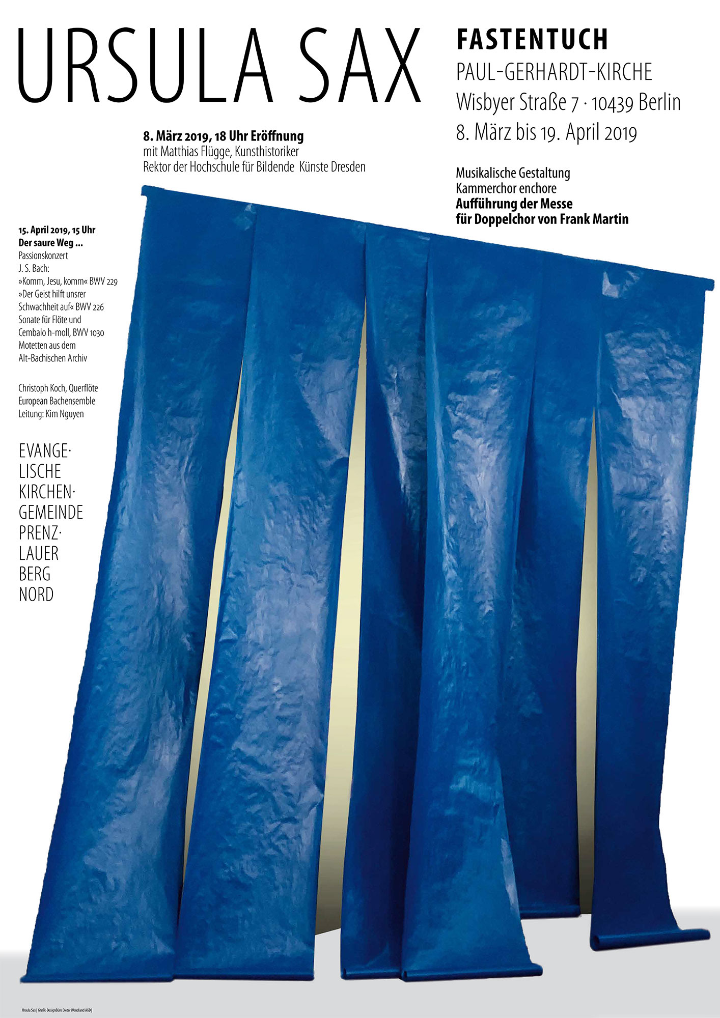 In den vergangenen Jahren wurde Papier zum bevorzugten Material. Unter anderen entstand die Werkgruppe »Fasten- und andere Tücher«, abstrakte Gebilde aus farbigen Papierschichten. Papier ist ein leichtes und fragiles Material, es ist vergänglich und Holz zumeist sein Grundstoff. Angesichts der Kruzifixe, die Ursula Sax immer wieder aus einfachen Packpapieren formt, gewinnen diese Eigenschaften eine metaphysische Qualität, wie überhaupt im jüngsten Werk der Bildhauerin die Momente von Zeit, Vergänglichkeit und Transzendenz eine wichtiger werdende Rolle spielen.